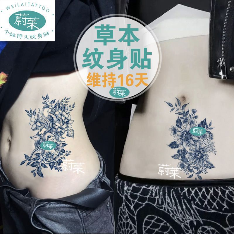 お腹の傷跡をカバーする半永久的なタトゥーステッカー、長持ちする防水性、無反射の花、九尾のキツネの脚、横暴でトレンディです。