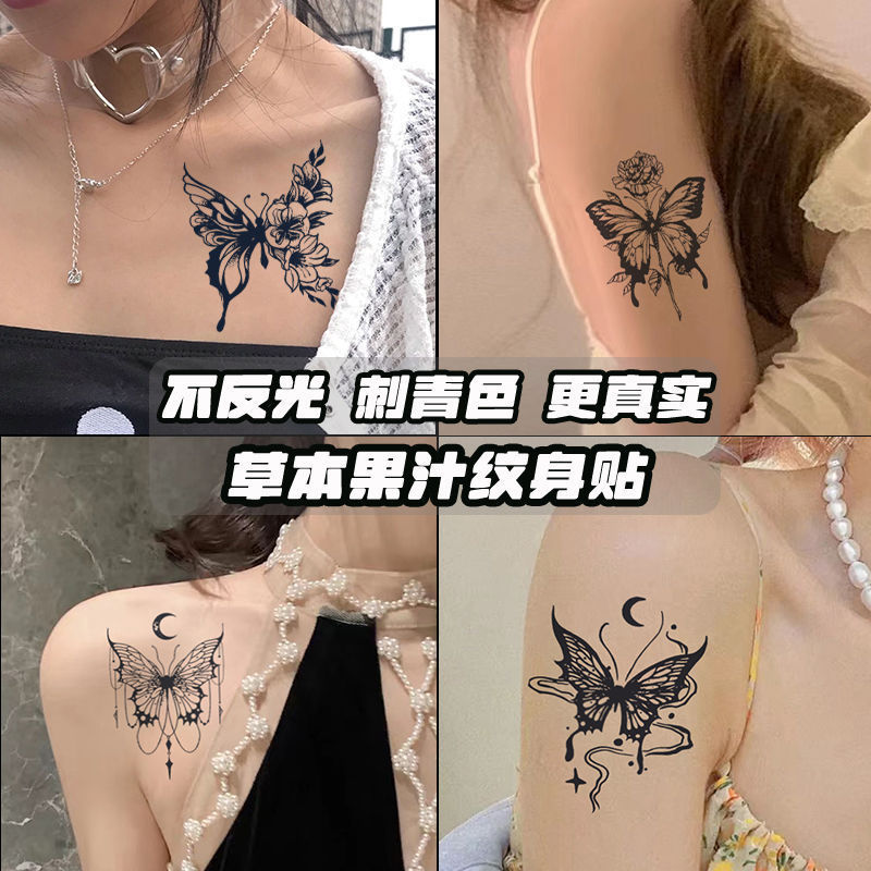 Xiaohongshu 無地鎖骨タトゥーステッカーセクシーな防水長持ち蝶の花ステッカータトゥー女性のパーソナライズされた肩