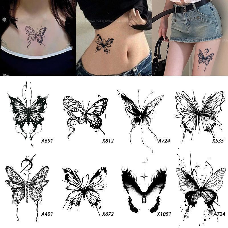 蝶のパターン純粋な欲望ホットガールタトゥーステッカー半永久的な防水長持ちリアルな無反射インムーンバタフライ