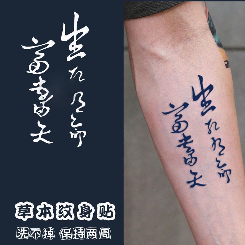 このジュースタトゥーは、人生と死は運命に左右され、富は天にあります、防水性と長持ちするリアルなタトゥーの色は無反射です。
