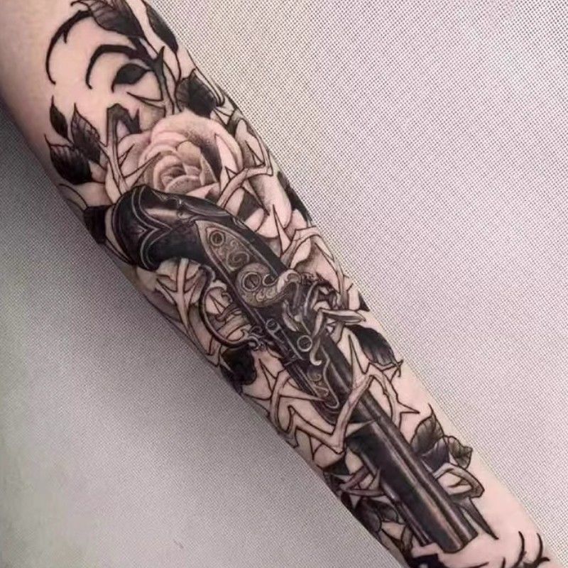 ローズピストルタトゥーステッカージュース半永久フラワーアーム長持ちシミュレーションステッカータトゥー防水無反射男性用