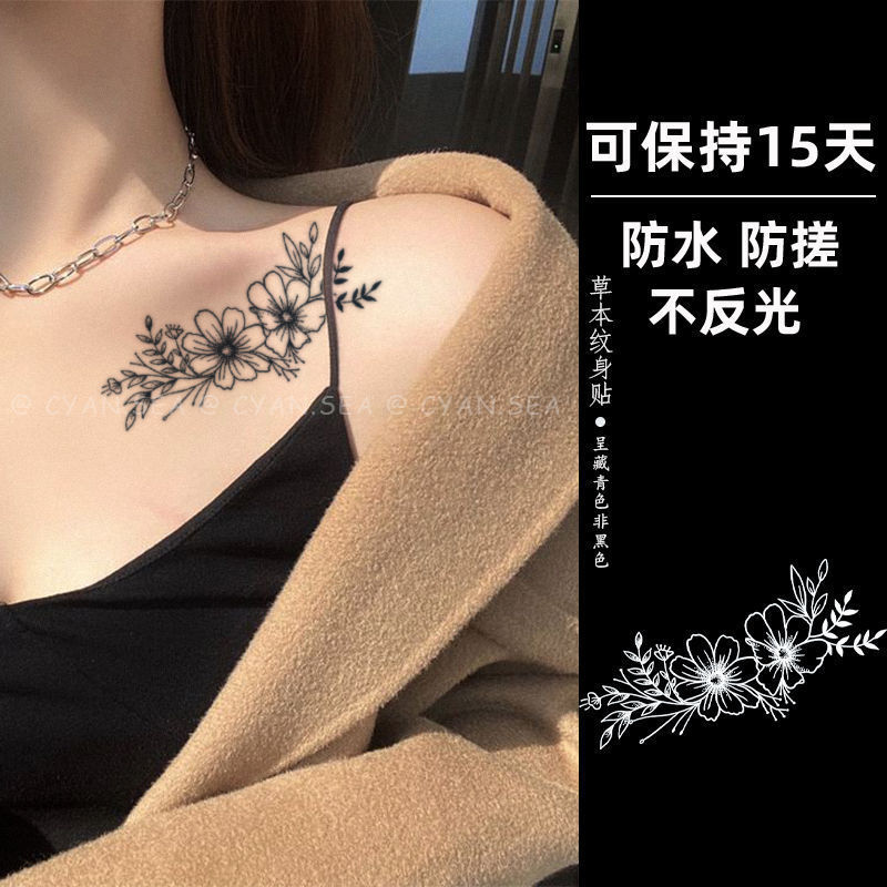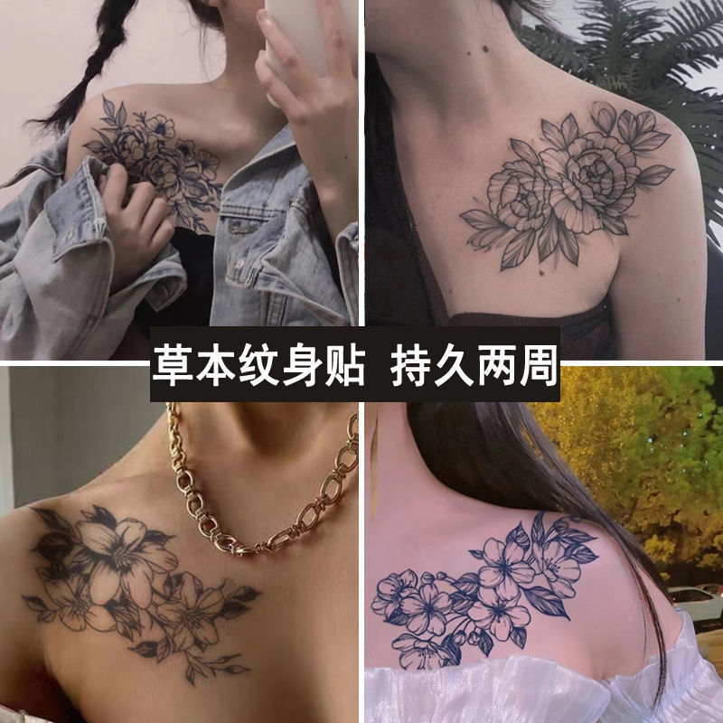 新鮮で清浄なフルーツジュースタトゥーステッカー、半永久的、防水性、長持ち、リアルな鎖骨、傷跡をカバーするセクシーなフラワーアームタトゥー