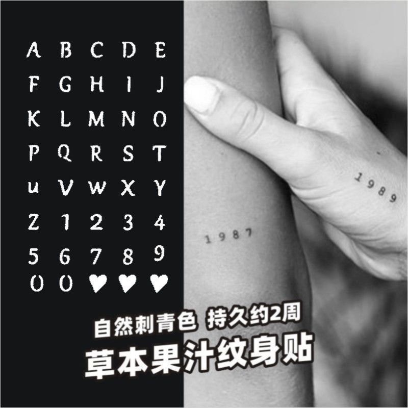 INS 英語英数字タトゥーステッカー 防水 長持ちするジュース植物 非反射 指と腕 男女兼用