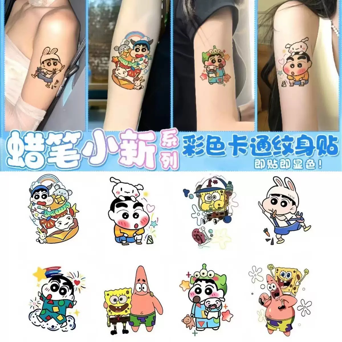 クレヨンしんちゃんフラワーアームカラータトゥーステッカーインスタイル漫画男性と女性のための長持ちするかわいい防水スポンジボブステッカー