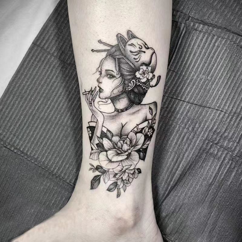 桜浮世絵日本の芸者タトゥーステッカー防水女性長期持続男性と女性の半永久シミュレーションジュースタトゥー
