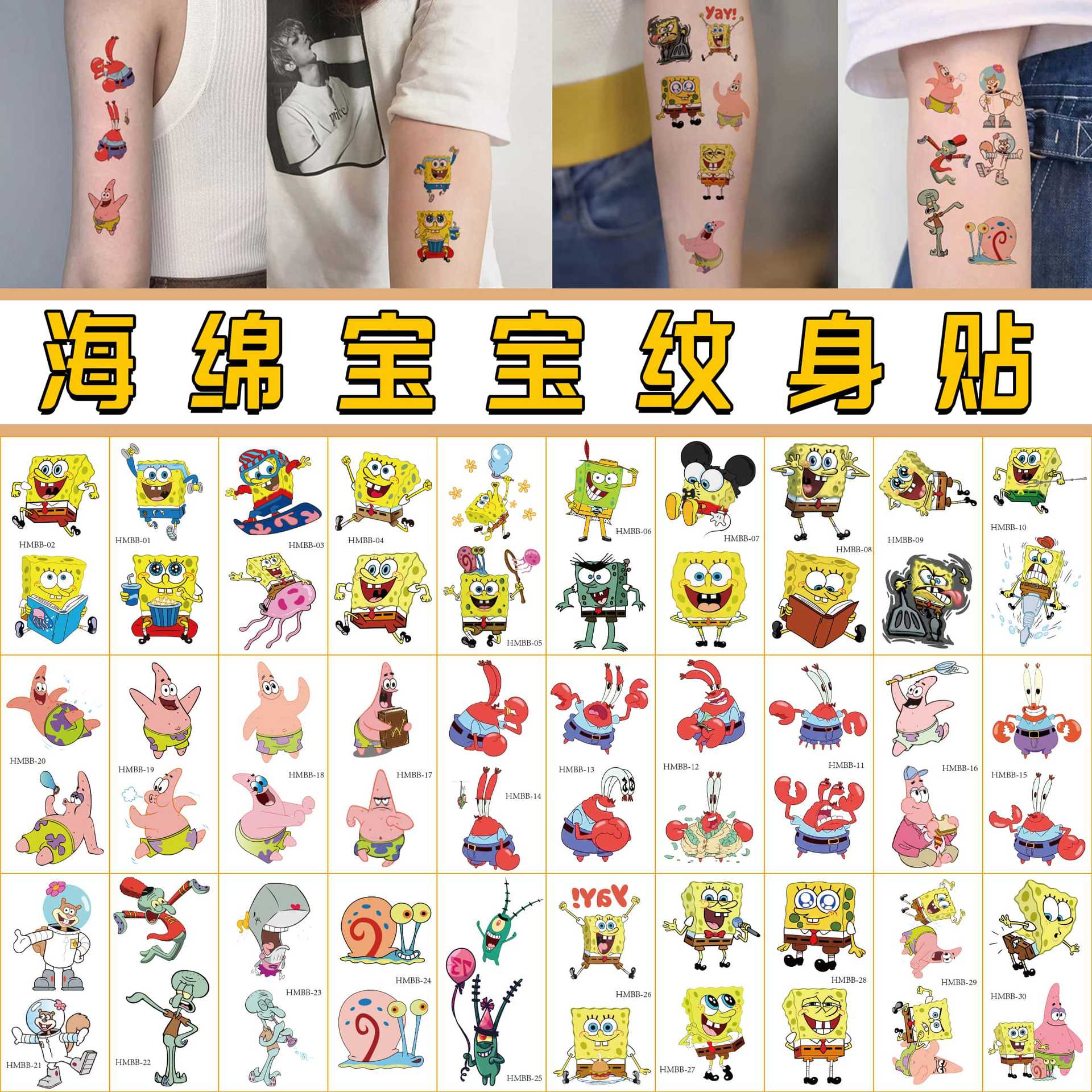 夏のオールドスクールは花の腕のカラーの紋章をつづり合わせてスポンジの赤ちゃんのクレヨンしんちゃんの漫画の刺青のシールを貼ります。