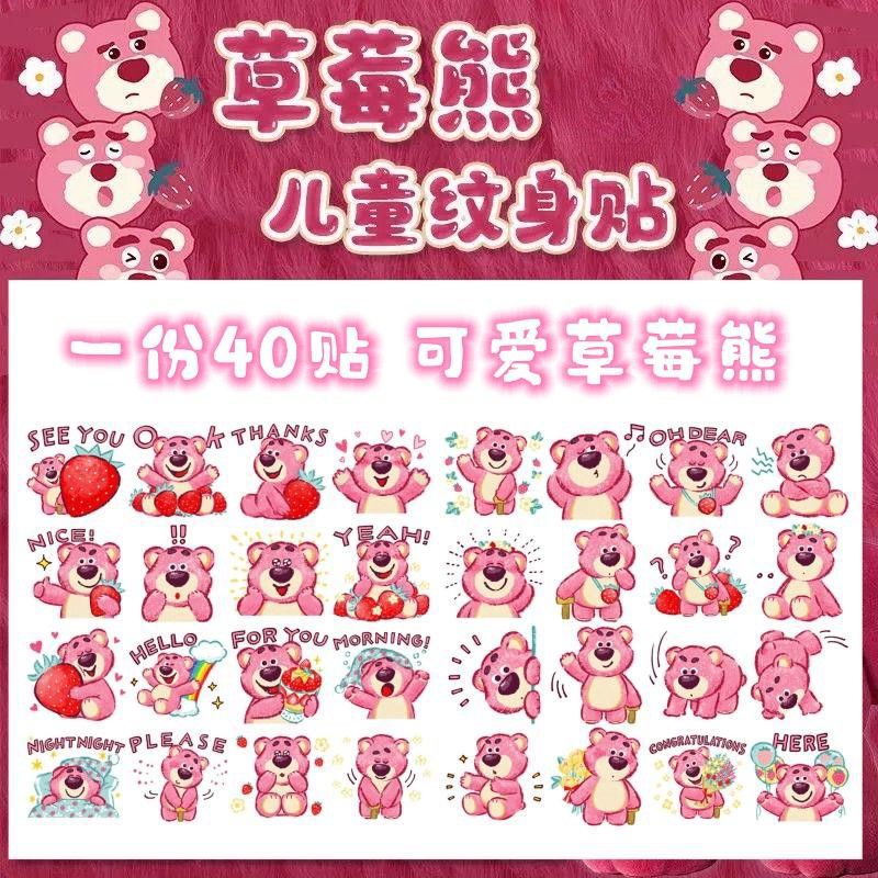 40枚のクレヨンのイチゴの熊の刺青は高い顔の値のピンクのイチゴの熊の漫画の刺青の貼るの幼稚園のかわいいです。