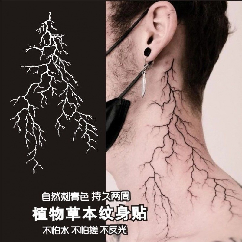 ins本ジュースヨーロッパとアメリカのダークオルタナティブシンプルなラインひび割れ血管腕首雷タトゥーステッカー