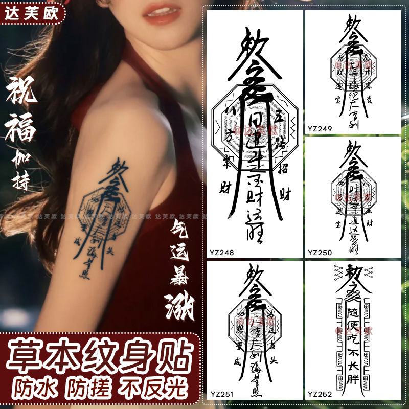 神秘的な東洋の力の祝福のタトゥーステッカー、見栄えの良いニッチなタトゥーステッカー、防水、長持ち、無反射COS小道具