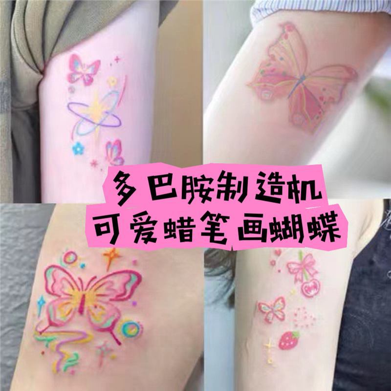 クレヨン落書きタトゥー防水少女持続かわいいアニメカラー蝶花猫シールins風