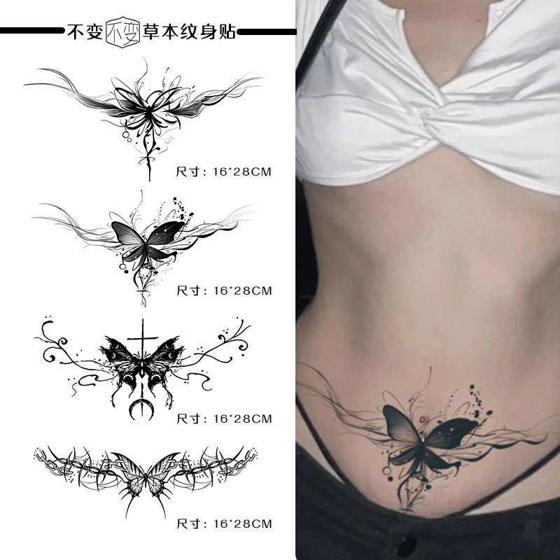 胸鎖骨のタトゥーシール、セクシーサスペンダー、蝶、夏の必需品タトゥーシール、洗えるお姉さんジュース
