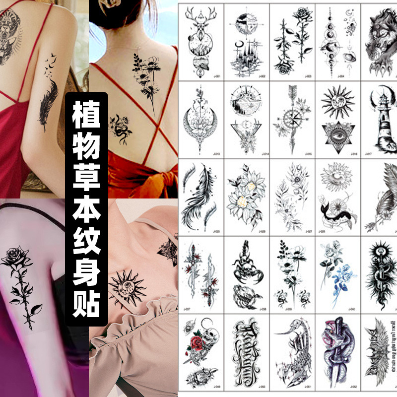 ジュースブックタトゥーステッカー女性用半永久洗えるセクシーな鎖骨ローズバタフライタトゥー無反射デカール