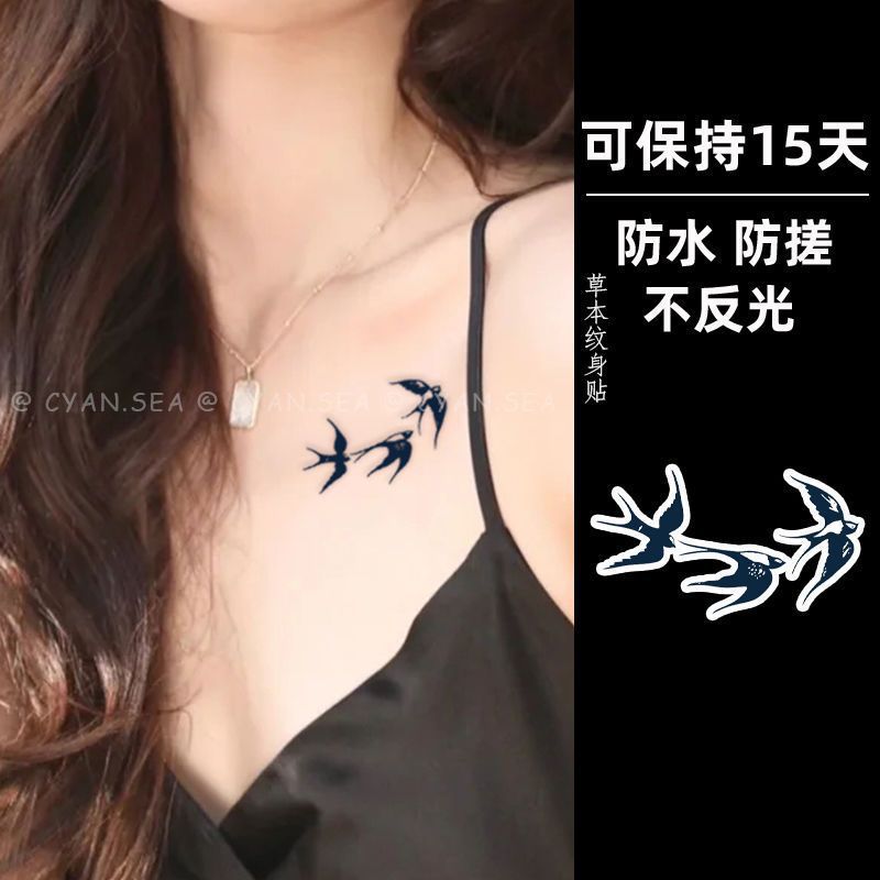 ツバメのような春のジュースタトゥーステッカー半永久的な小さな新鮮な鎖骨ステッカー無反射防水本物