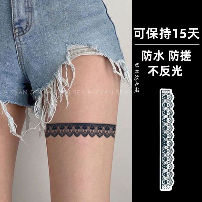 エレガントなレースのジュースタトゥーステッカー、半永久的なセクシーなレッグリング、クールで甘いホットガール、防水性と耐汗性、リアルな