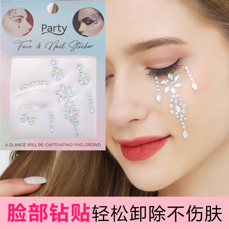 クロスボーダーABカラードリルアイメイクアクセサリー顔メイクダイヤモンドステッカー子供ステージパフォーマンス顔貼りクリスタル真珠ステッカー