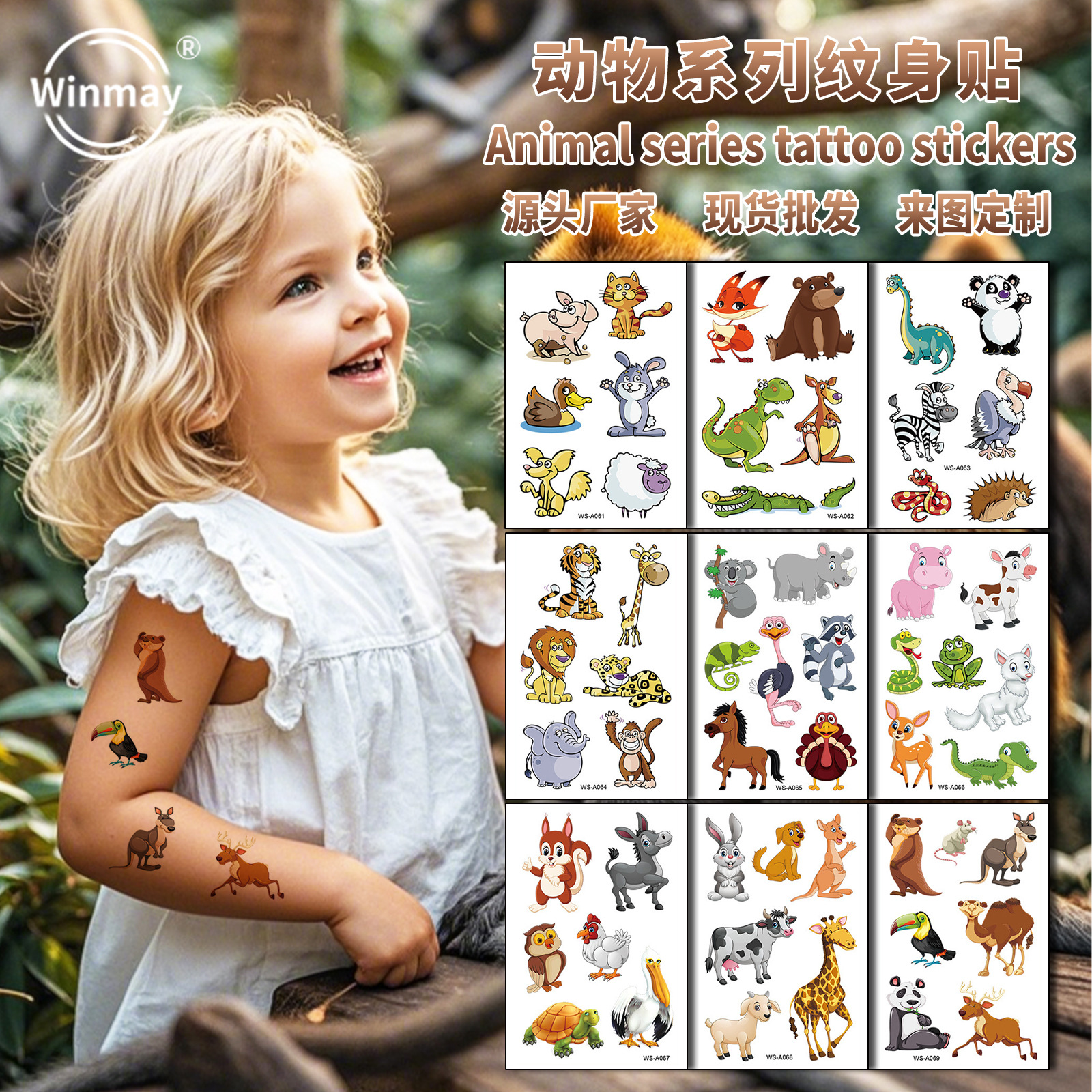 クロスボーダー新作漫画動物シリーズタトゥーステッカーかわいい動物園パーティー子供用タトゥーフェイスステッカー防水