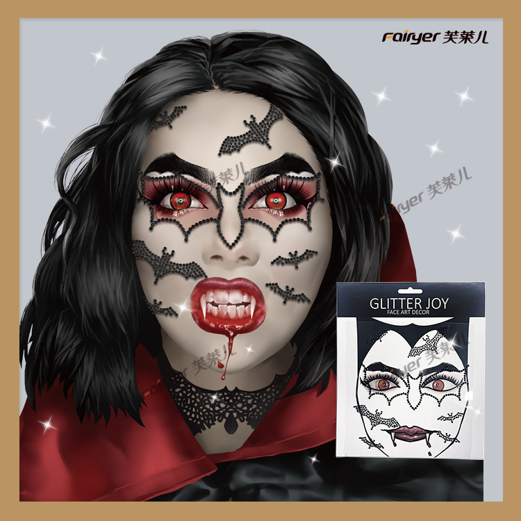 国境を越えたハロウィーンのタトゥーは幽霊の顔を貼ってホラー舞踏会の蛍光パーティーの顔を貼って樹脂のアクリルを貼って貼ります。