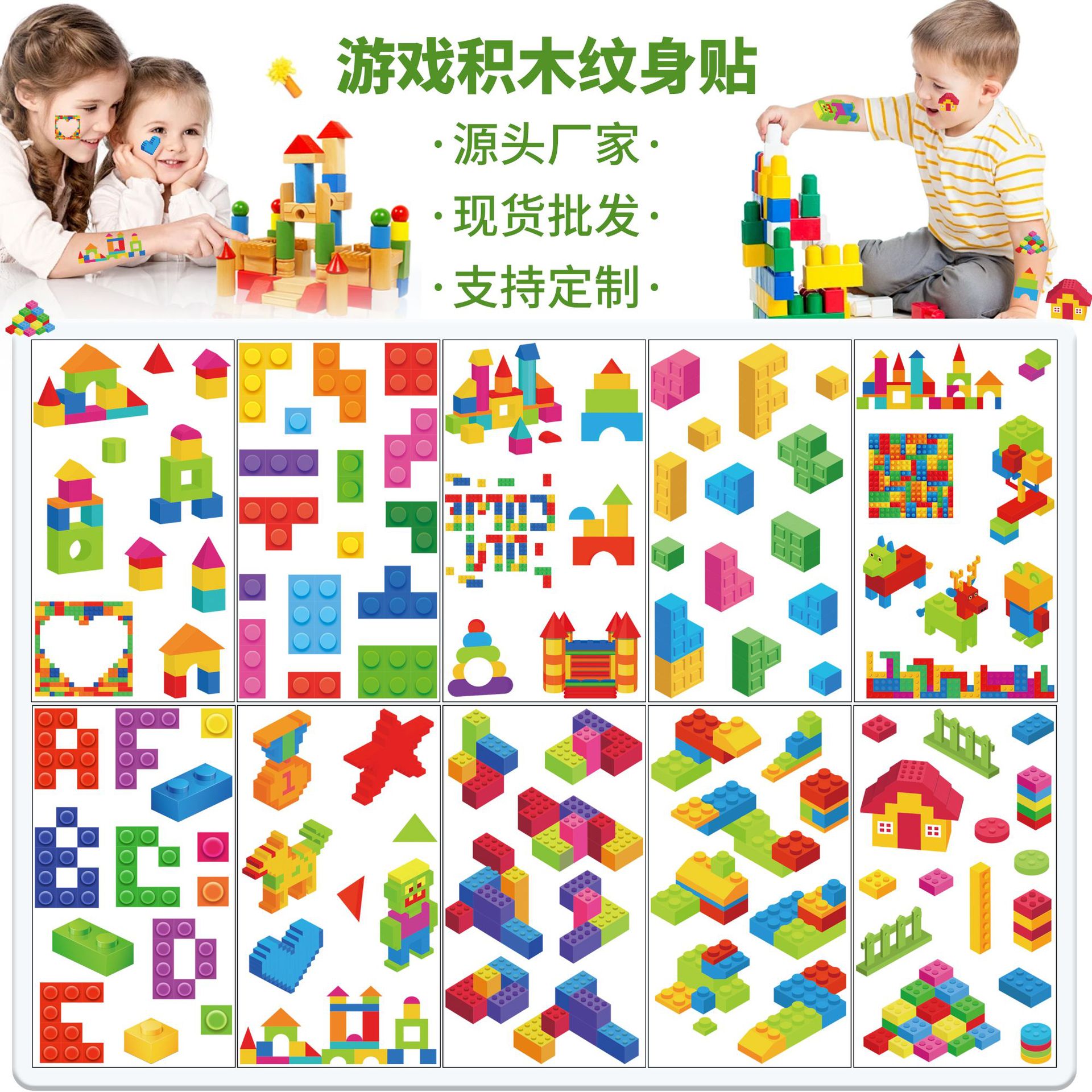 越境新型益智積み木漫画の紋章はかわいい男の子の女の子の臨時の顔の腕の装飾のステッカーを貼ります。