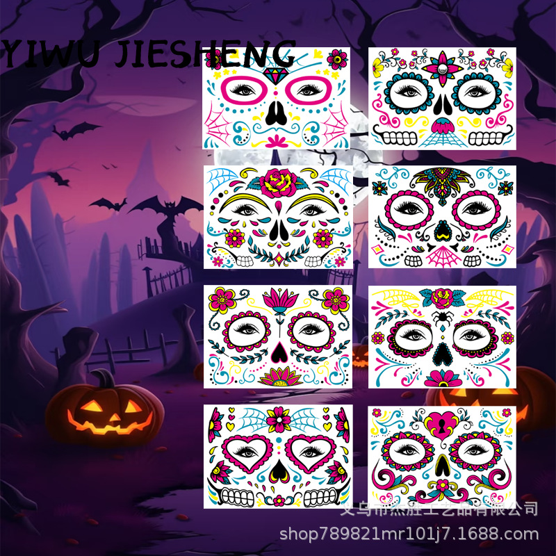 ハロウィーン亡霊祭8種類の頭蓋夜光ネオンパーティー環境保護タトゥー