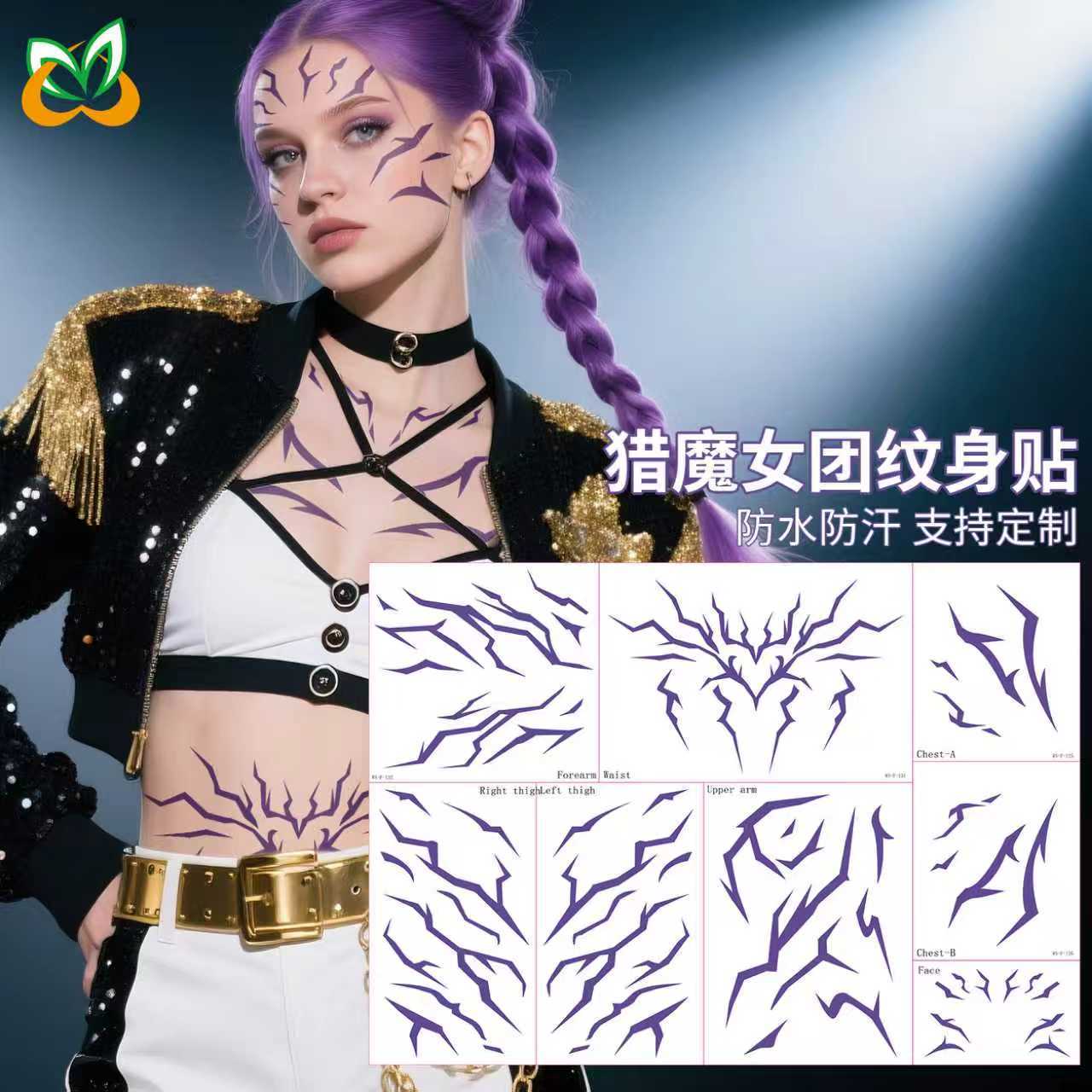 アマゾンで人気のアニメ「魔女狩り」の紫色のタトゥーステッカー、悪魔の男の子グループの腕のストライプ防水ステッカー