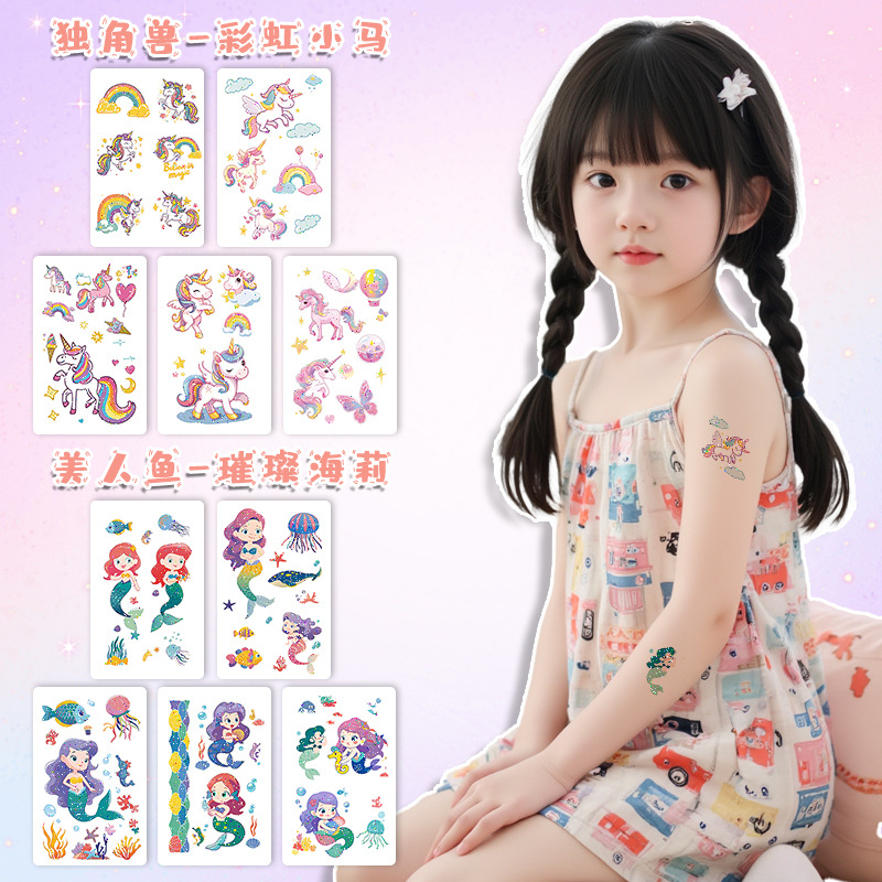 マーメイド-輝くヘイリー/海底泡/虹のポニー/夢の楽園カラーフラッシュのタトゥーのステッカー