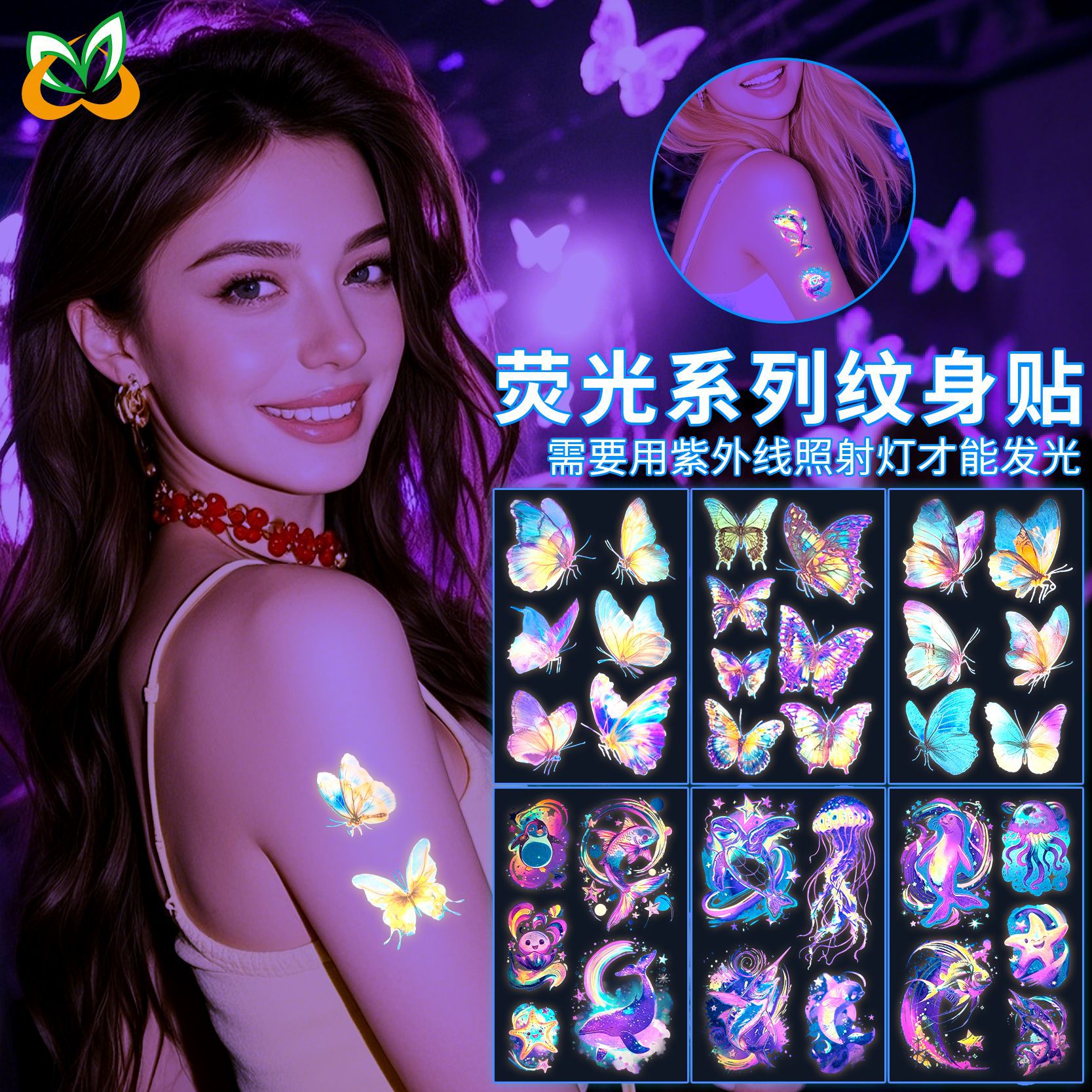 新型クロスボーダー蛍光蝶紋身貼りクラブバー音楽祭花腕タトゥー防水防汗ハイ爆場