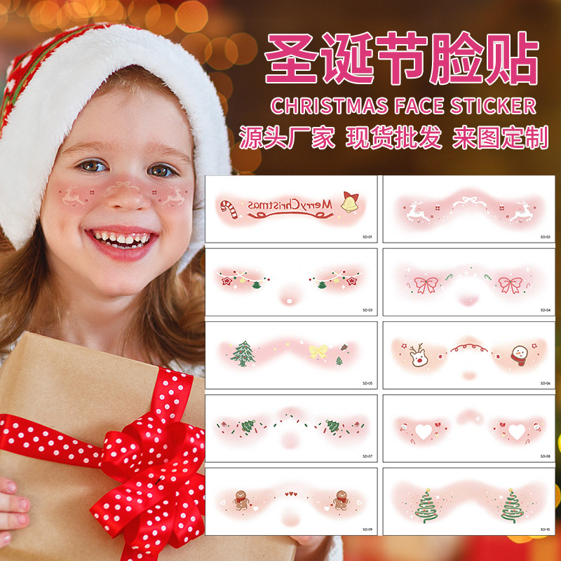 クロスボーダーのクリスマスの顔は雪の花の頬紅の愛の顔の化粧の紋様を貼って漫画のクリスマスの化粧の顔を貼ってタトゥーの卸売りを貼ります。
