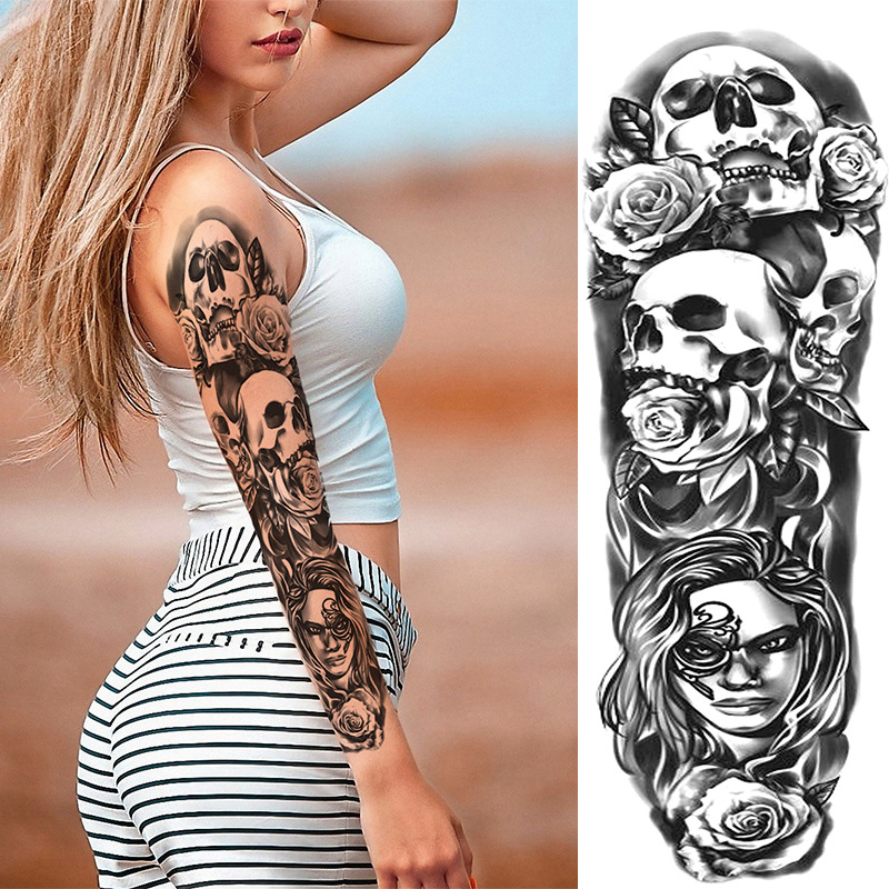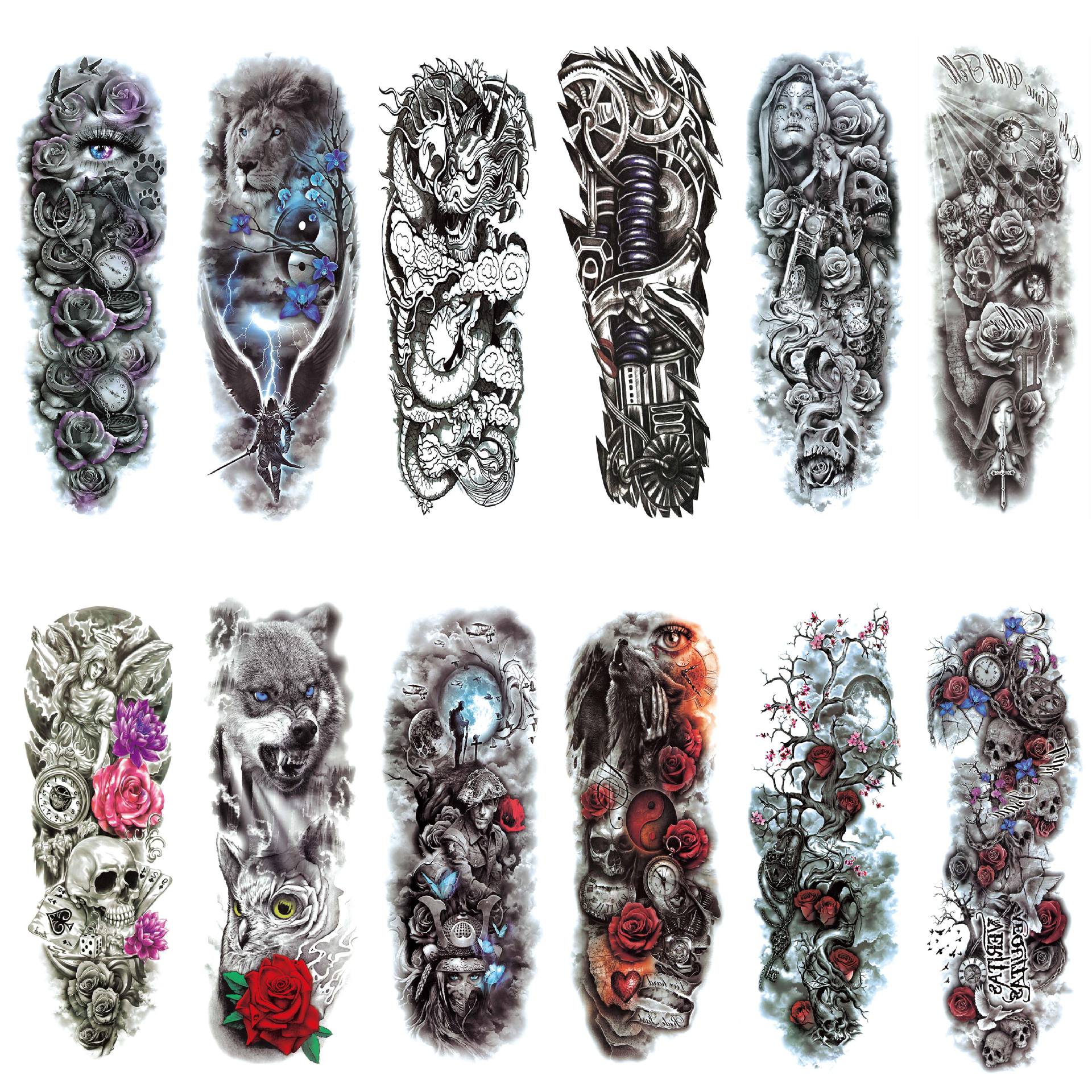 新しい半腕の刺青は国境を越えたアマゾンの人気セットの暗黒欧米の写実的な防水の刺青のシールの卸売りを貼ります。