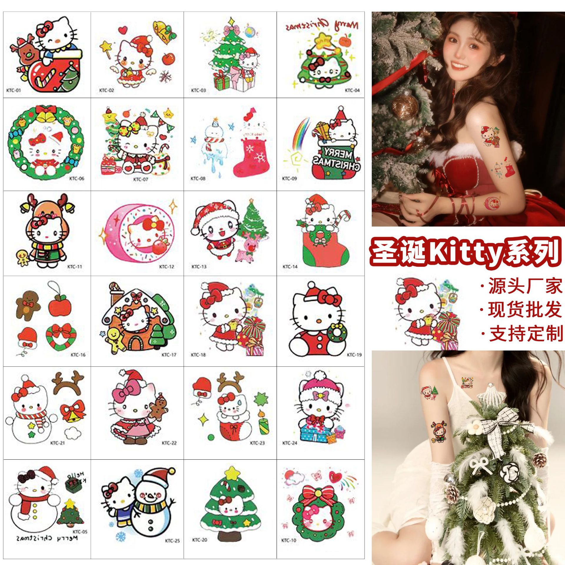 起爆ハローキティ猫カラータトゥーはクリスマスパーティーのかわいい漫画子供ハローキティのタトゥーを貼っています