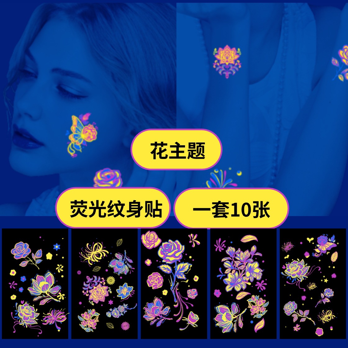 2024国境を越えた欧米の新しい蛍光タトゥーは男女の愛の唇の花蝶バーパーティーの臨時シールを貼っている