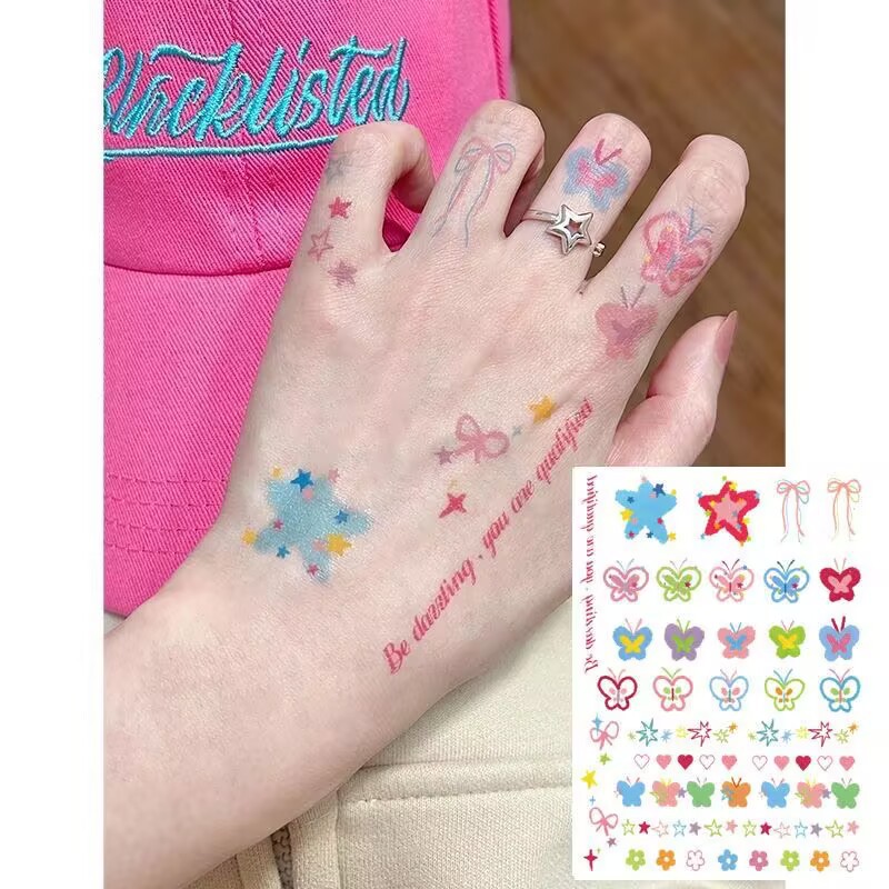 人気の夏の星と花のアームカラータトゥーステッカーインかわいいドーパミンガールハート洗える長持ち学生