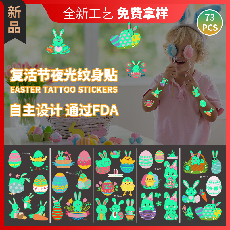 新しい夜の光のイースターの刺青のステッカー男の子の女の子の漫画のウサギの卵の卵の色の卵の透かしのボディは絵を貼ります