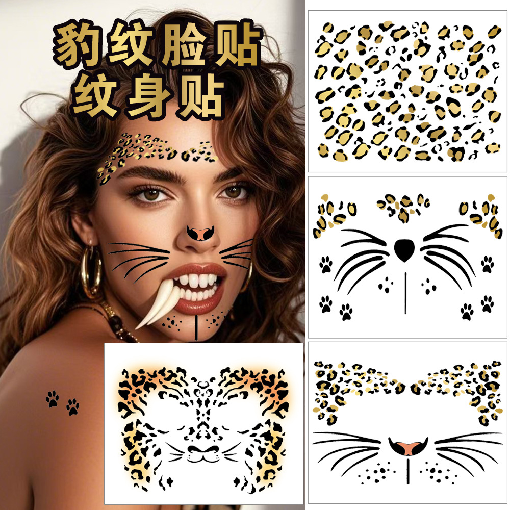 クロスボーダー欧米風ヒョウ柄タトゥーシール カラフルフェイスステッカー パーティー用一時的なタトゥーシール 個性的な装飾