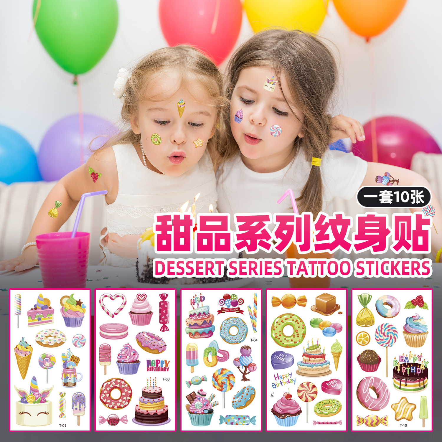 国境を越えた新しいデザートケーキドーナツタトゥー防水防汗誕生日パーティーキャンディー子供タトゥーステッカー