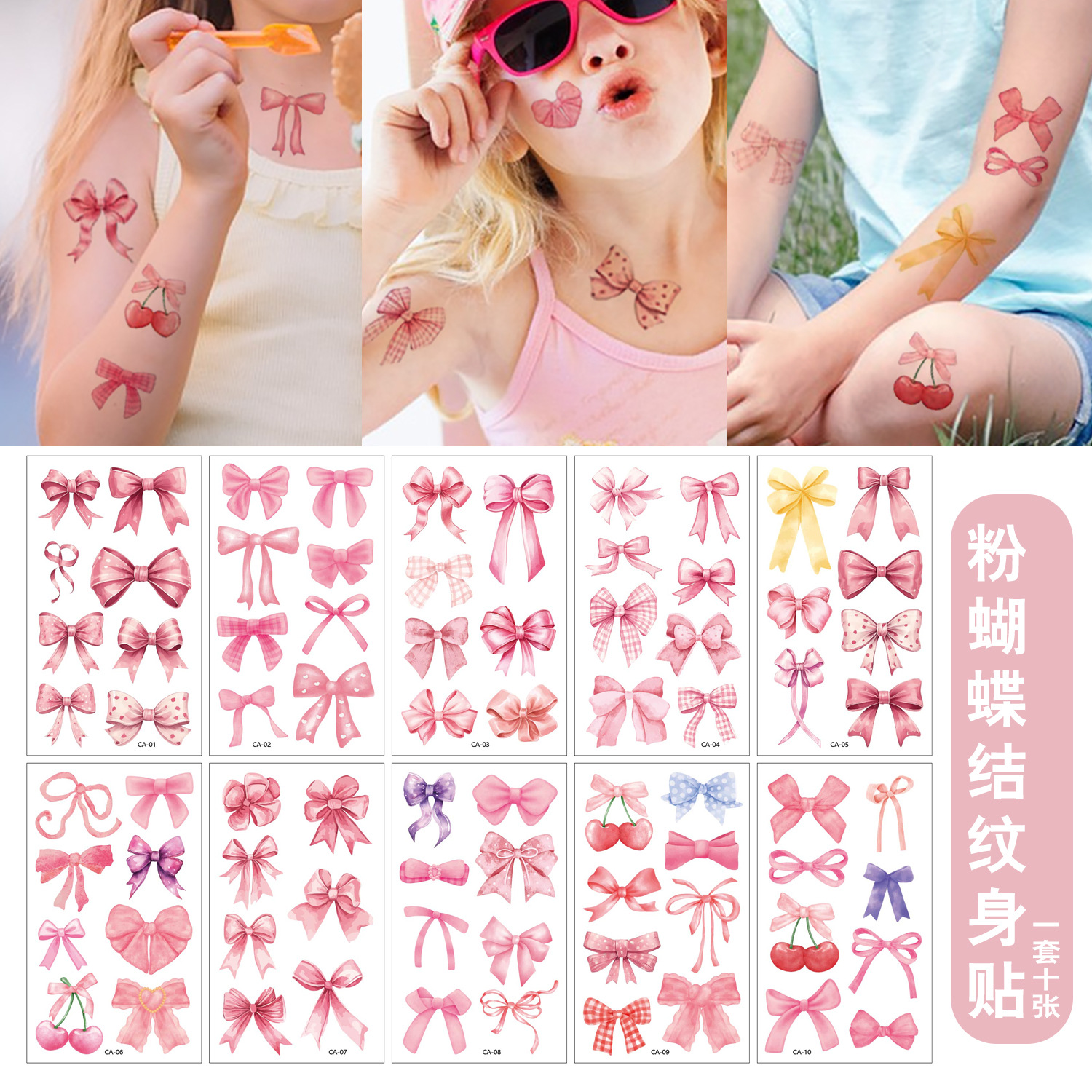 国境を越えて人気のかわいいアニメ子供ピンクの蝶ネクタイの一時的な刺青シールリボンのボディシール