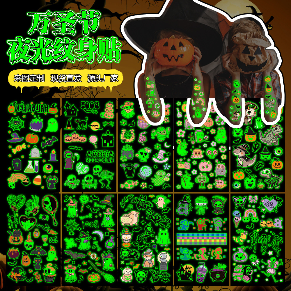 国境を越えた新しい発光ハロウィンタトゥーステッカー子供用漫画かわいいホリデーパーティー一時的な光るタトゥーステッカー