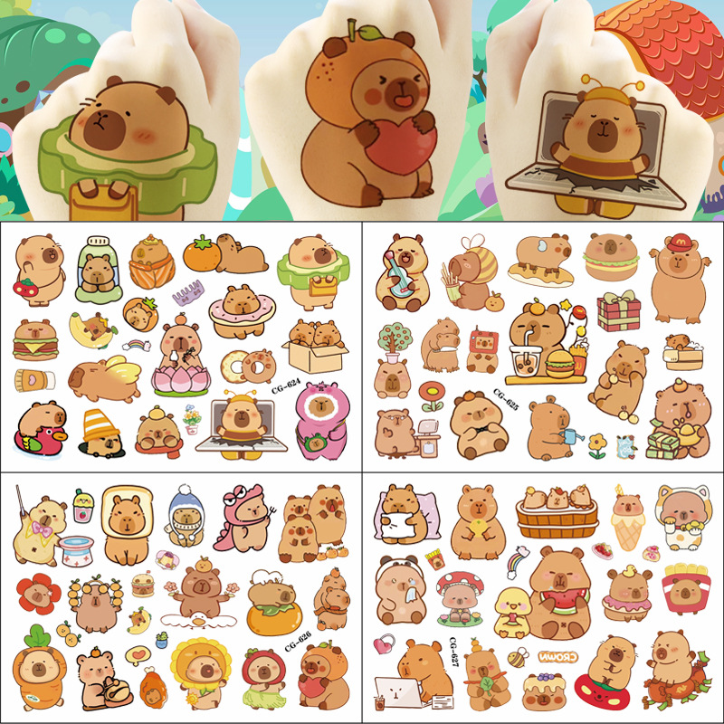 カピバラの男の子の使い捨ての刺青は子供の刺青のシールを貼ります。