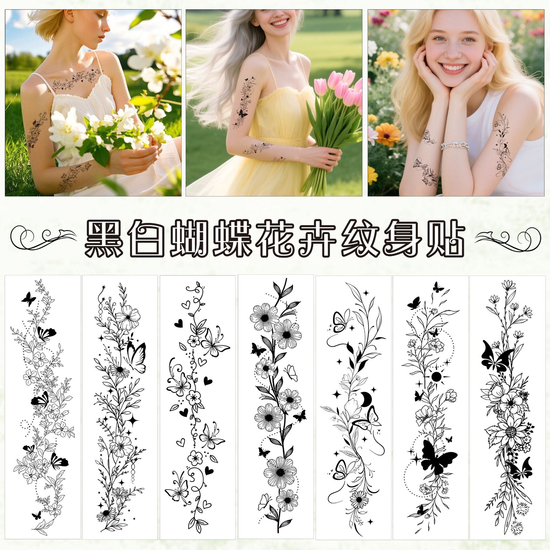 アマゾンクロスボーダー新品花腕入れ墨ステッカー高級感鎖骨セクシーバスト黒野生花柄入れ墨ステッカー