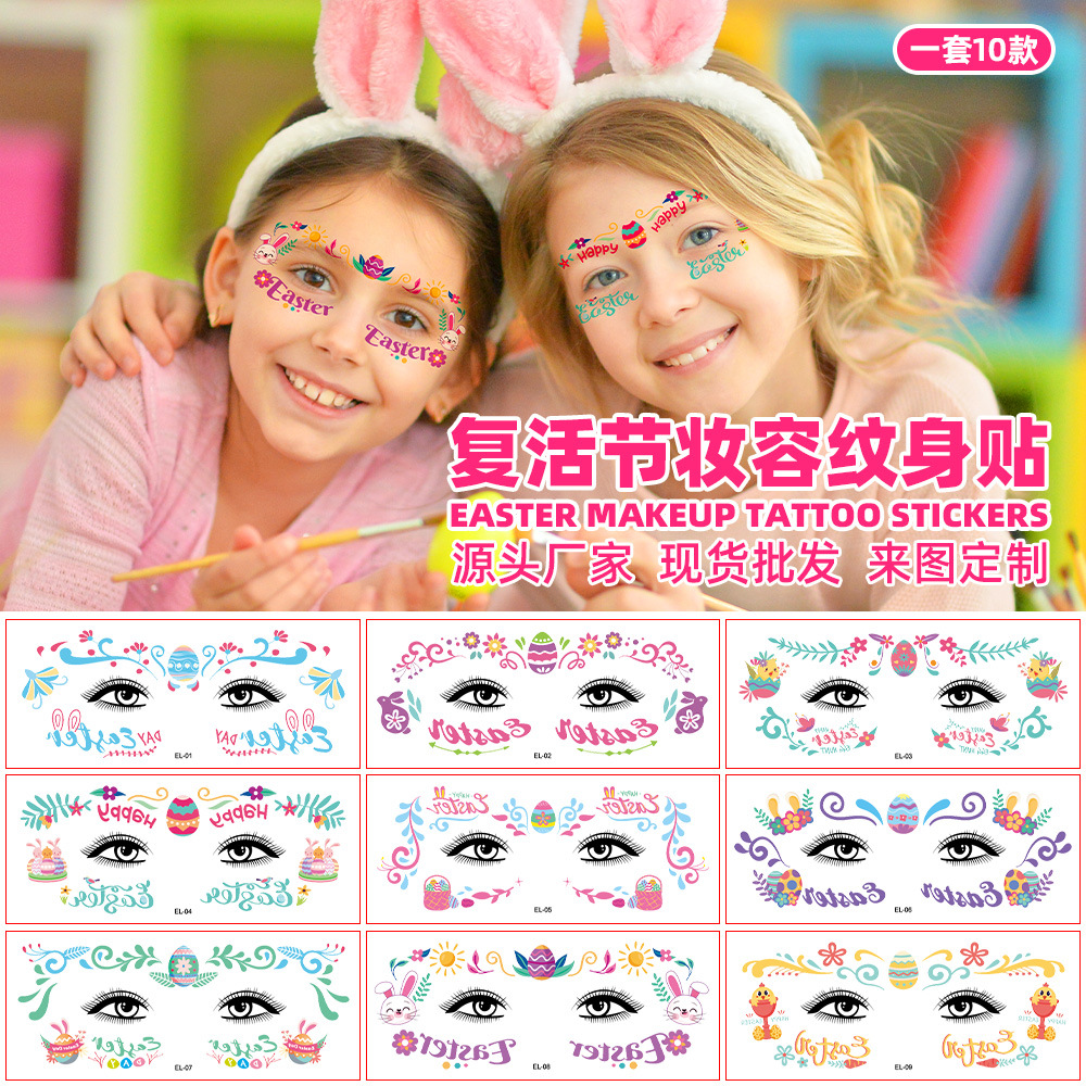 2025新型イースターメイクの紋章は、卵パーティーの仮面舞踏会イベントの顔にタトゥーを貼る