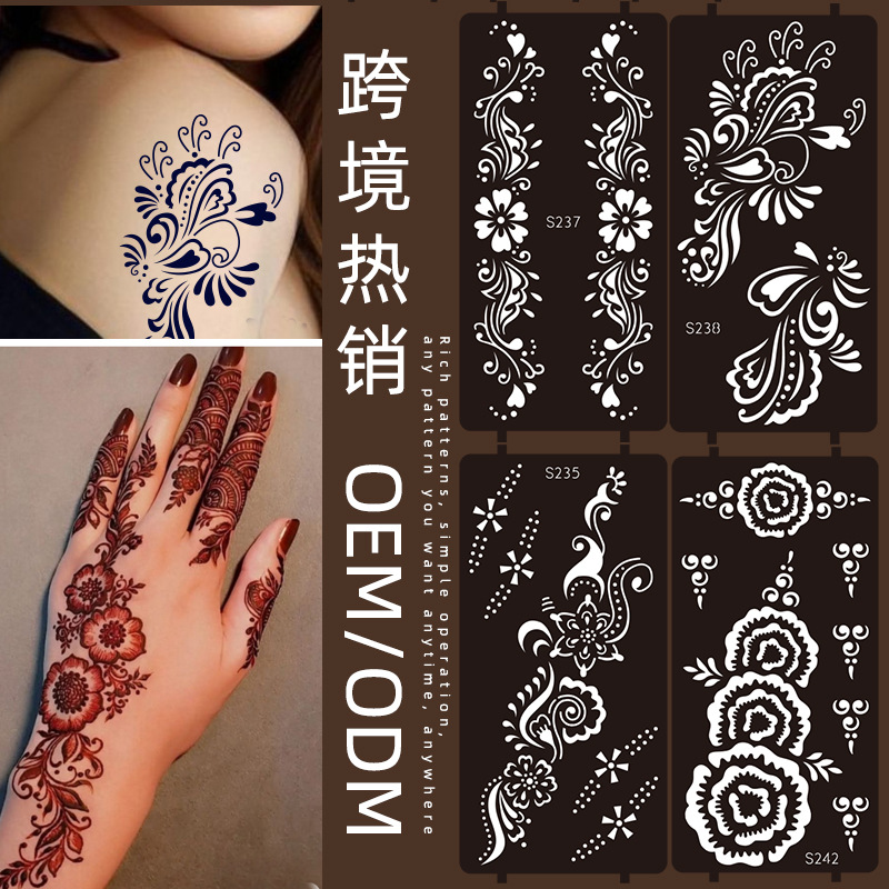 Zhengxiang 2025 クロスボーダーインドレースタトゥーステッカー赤茶色防水ヘナタトゥーステッカータトゥーアマゾン