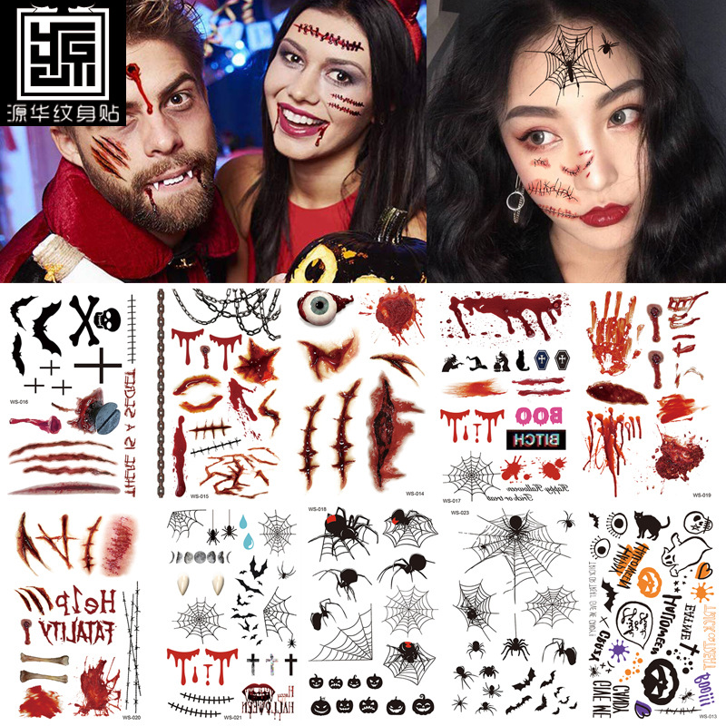 ハロウィーンのタトゥーのステッカーは、ホラー防水リアルなメーカーのスポット卸売りの傷跡のタトゥーのステッカーです。