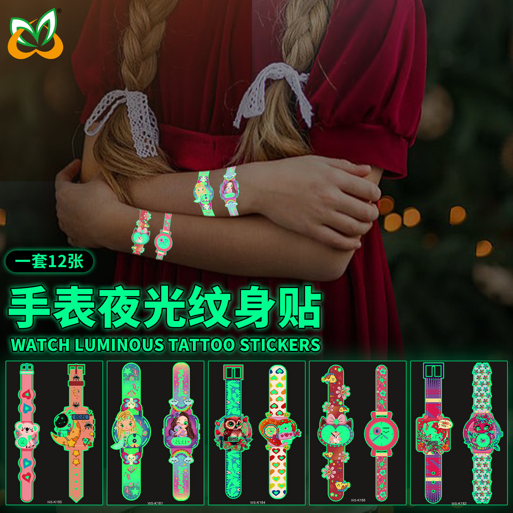 オリジナル漫画時計タトゥーステッカー子供の転写夜発光ステッカー防水ベビーウォータースタンプステッカー卸売