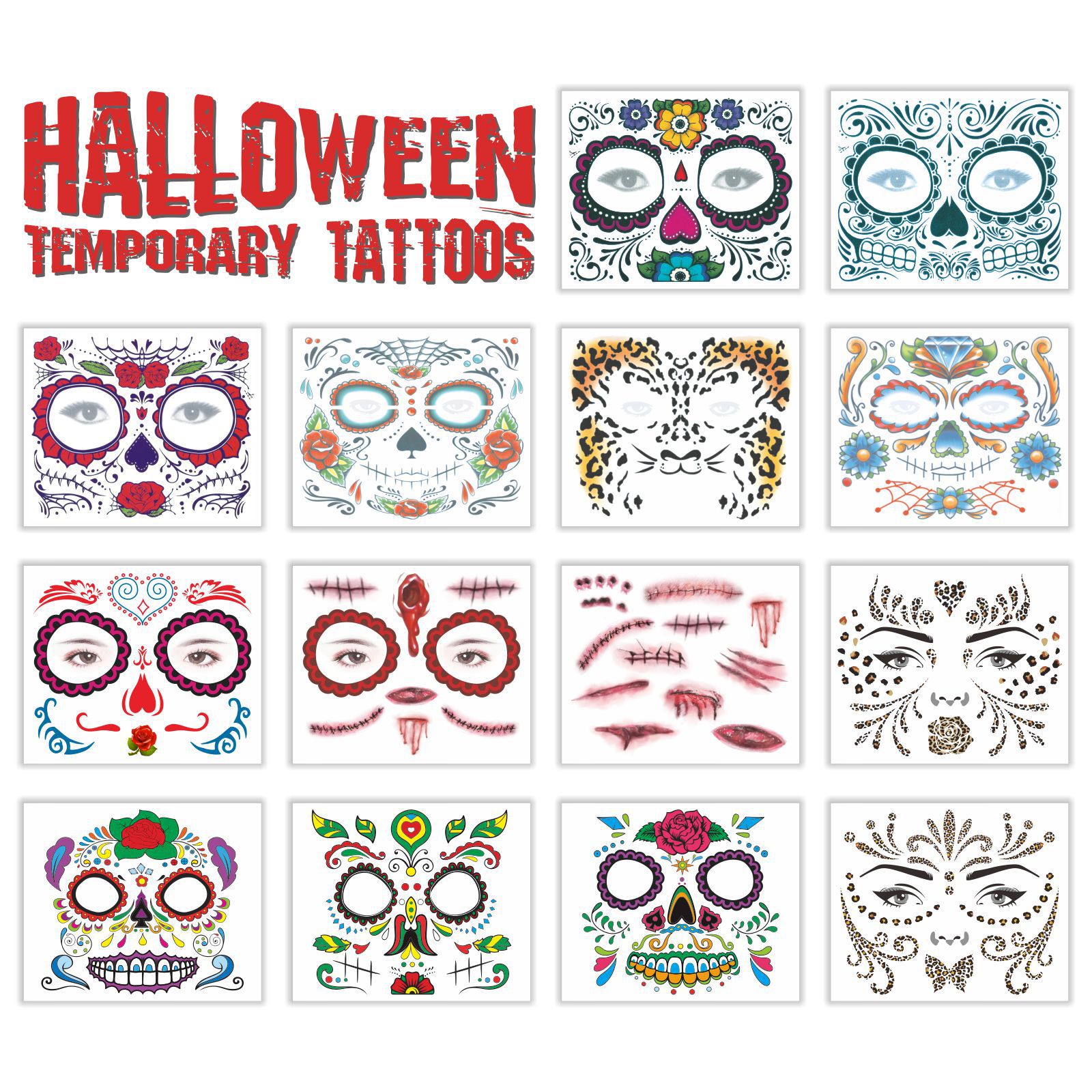 国境を越えたソース欧米のタトゥーはハロウィーンの顔に防水環境保護舞台道具芸術化粧卸売りのカスタマイズを貼っている