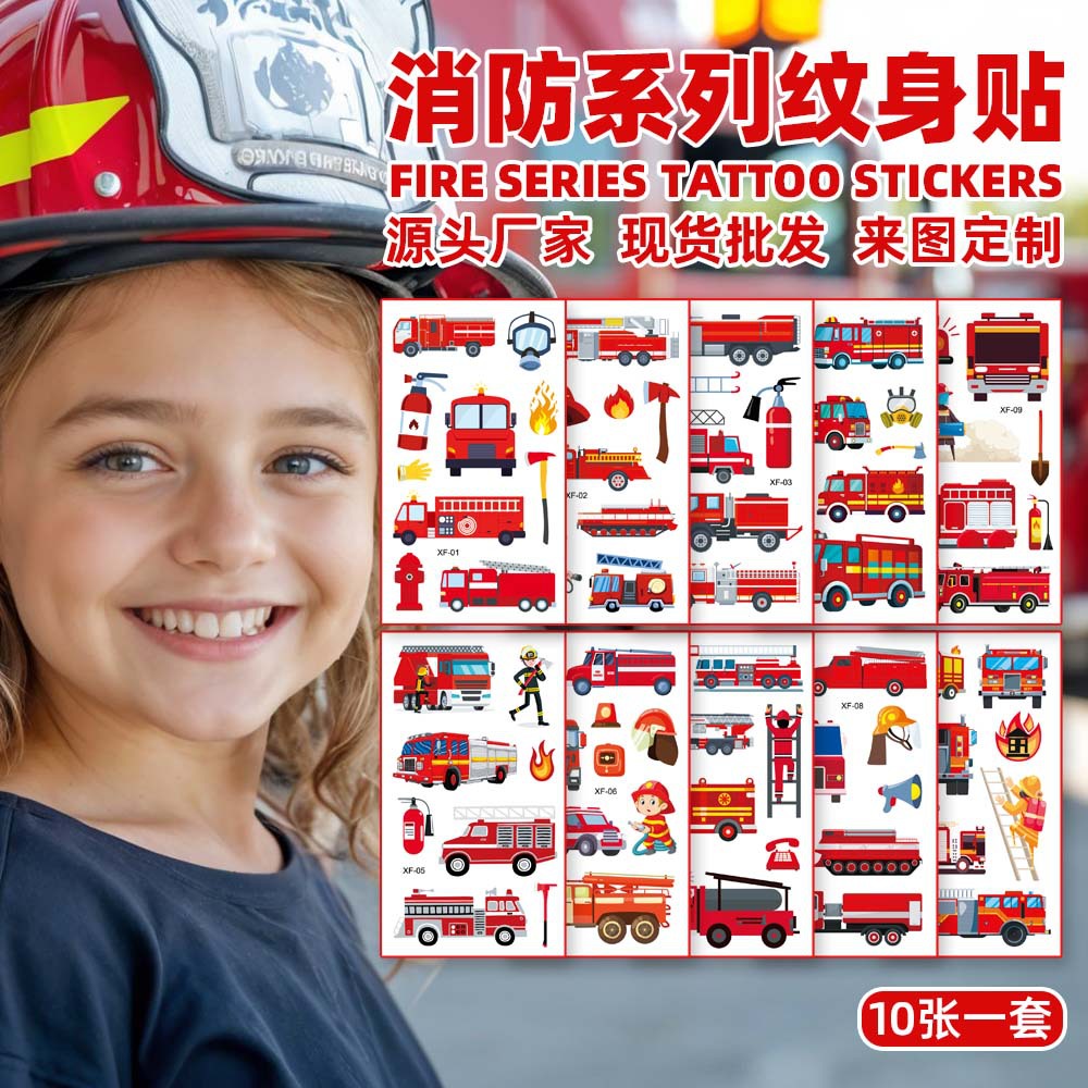 国境を越えた新しい子供漫画消防車タトゥー防水個性創造性消防安全貼り奨励シール