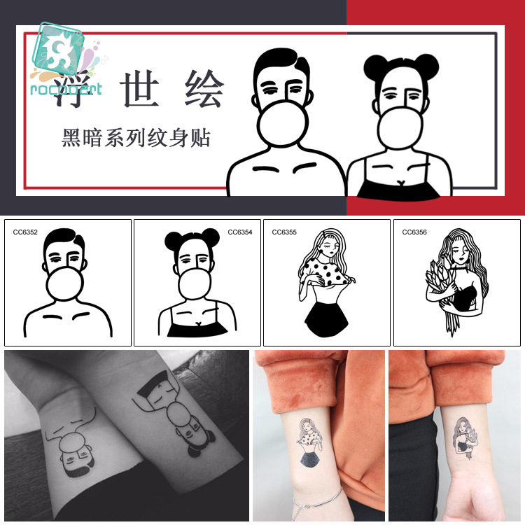 国境を越えたソース防水暗黒の紋章は不良少女の紋章を貼って趣味の手描きの線の白黒を貼っています。