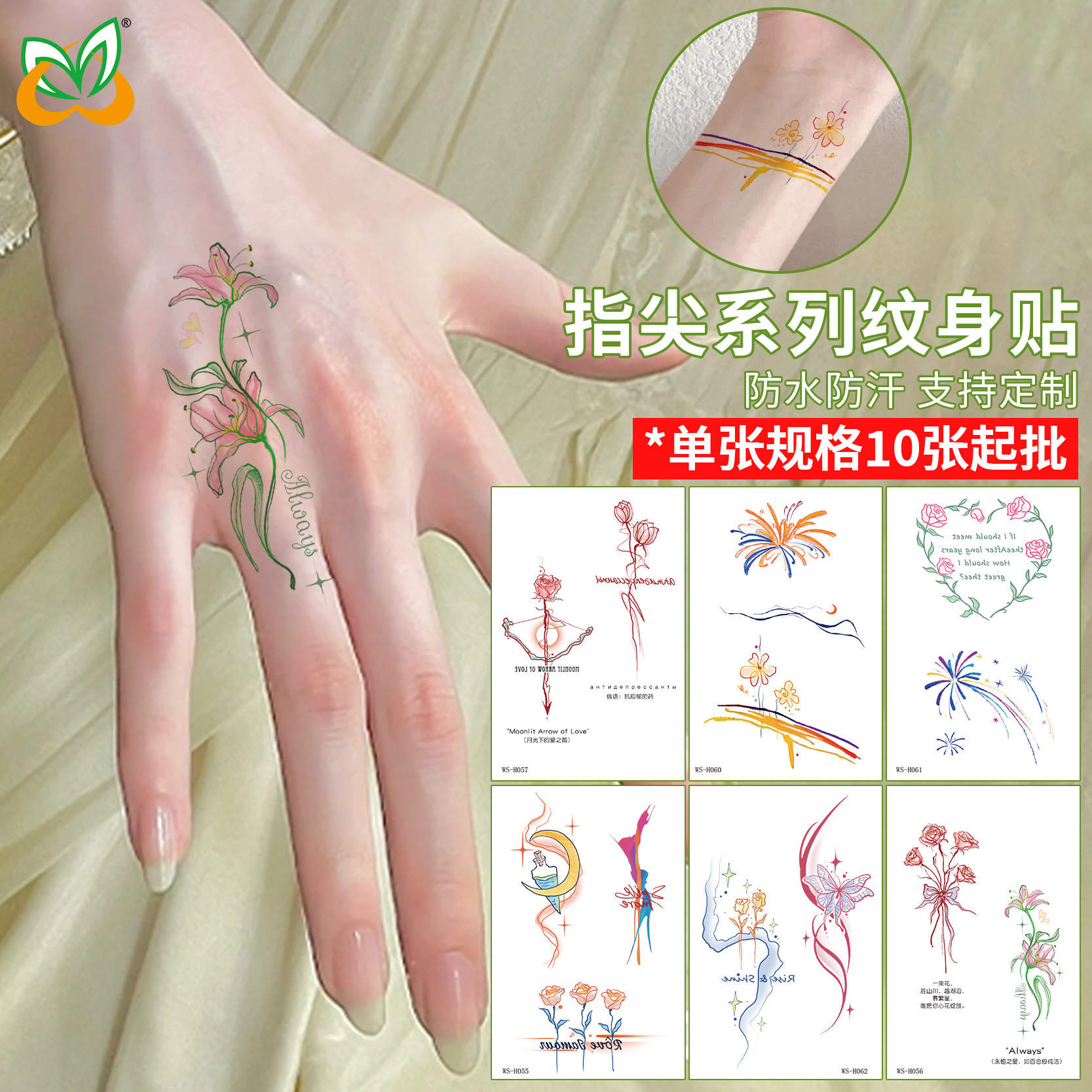 指の刺青は防水の持続的なジュースの半永久的なシミュレーションの指の男女の手の甲の小さい図案を貼って光を反射しません。