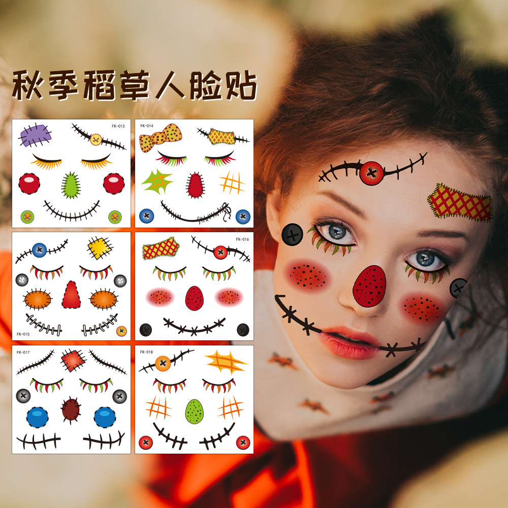 2025 新しいハロウィン秋のかかし面白いフェイスステッカー傷跡メイクタトゥーステッカー防水タトゥー