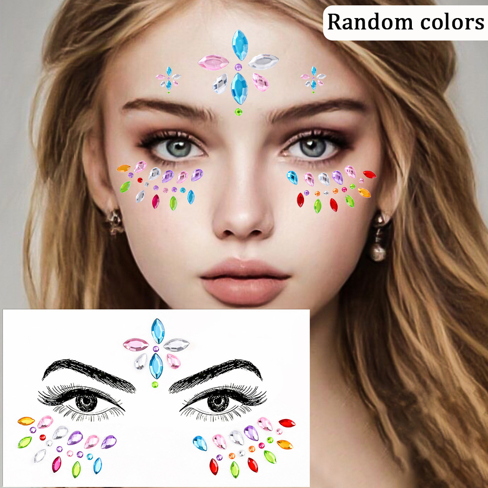 ステージパフォーマンスフェイスデコレーションステッカーダイヤモンド模造クリスタルガラスカラーアクリル音楽祭ダンスパーティーガールフェイスステッカーダイヤモンド