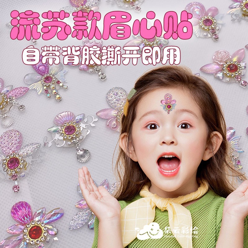 子供用タッセル眉毛ステッカー、粘着式ベビー漢服メイクアップアクセサリー、女の子用ステージパフォーマンスステッカー、輝くダイヤモンドステッカー