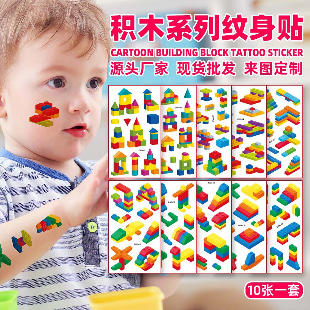 国境を越えた新しい子供の漫画ビルディングブロックタトゥーステッカー男の子と女の子用かわいい楽しいパーティーボーナスステッカー在庫卸売